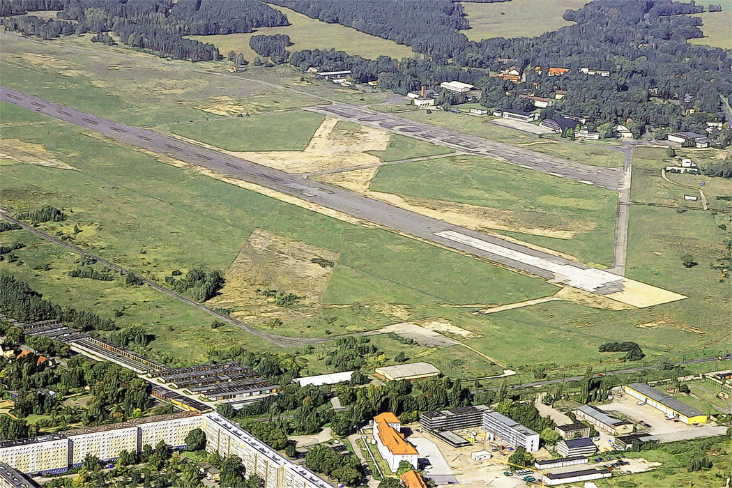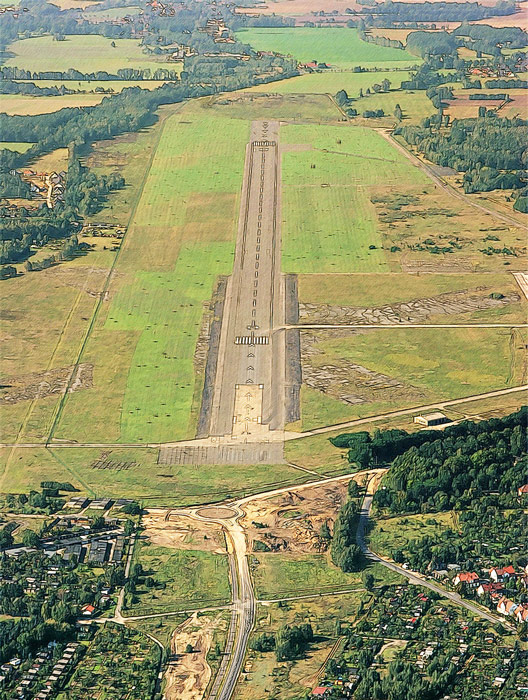 Die sternförmige Anordnung der ehemaligen Start- und Landebahnen sind immer noch zu erkennen.