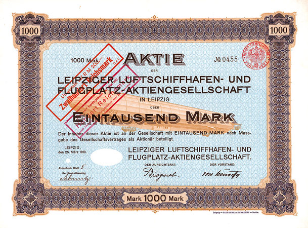 Leipziger Bürger gründeten eine Gesellschaft mit dem Ziel, eine Luftschiffhafen-Aktiengesellschaft ins Leben zu rufen. Es konnten Aktien für 937.000 Mark gezeichnet werden und am 15. März 1913 die Leipziger Luftschiffhafen- und Flugplatz-Aktiengesellschaft (LEFAG) mit einem Grundkapital von 1,2 Mio. Mark gegründet werden. Nachdem die Stadt Leipzig nach dem Tod von Adolph Andreas Friedrich Gontard (1834–1909), Besitzer des Ritterguts Mockau, von dessen Witwe 1912 das Rittergut erworben hatte, stellte sie der Aktiengesellschaft 112 Hektar der Fläche für 30 Jahre unentgeltlich zur Verfügung. Die Stadt übernahm die Erschließungskosten für das auf der Flur des 1915 eingemeindeten Mockau befindliche Flugplatzgelände und gewährte eine jährliche Beihilfe von 20.000 Mark.